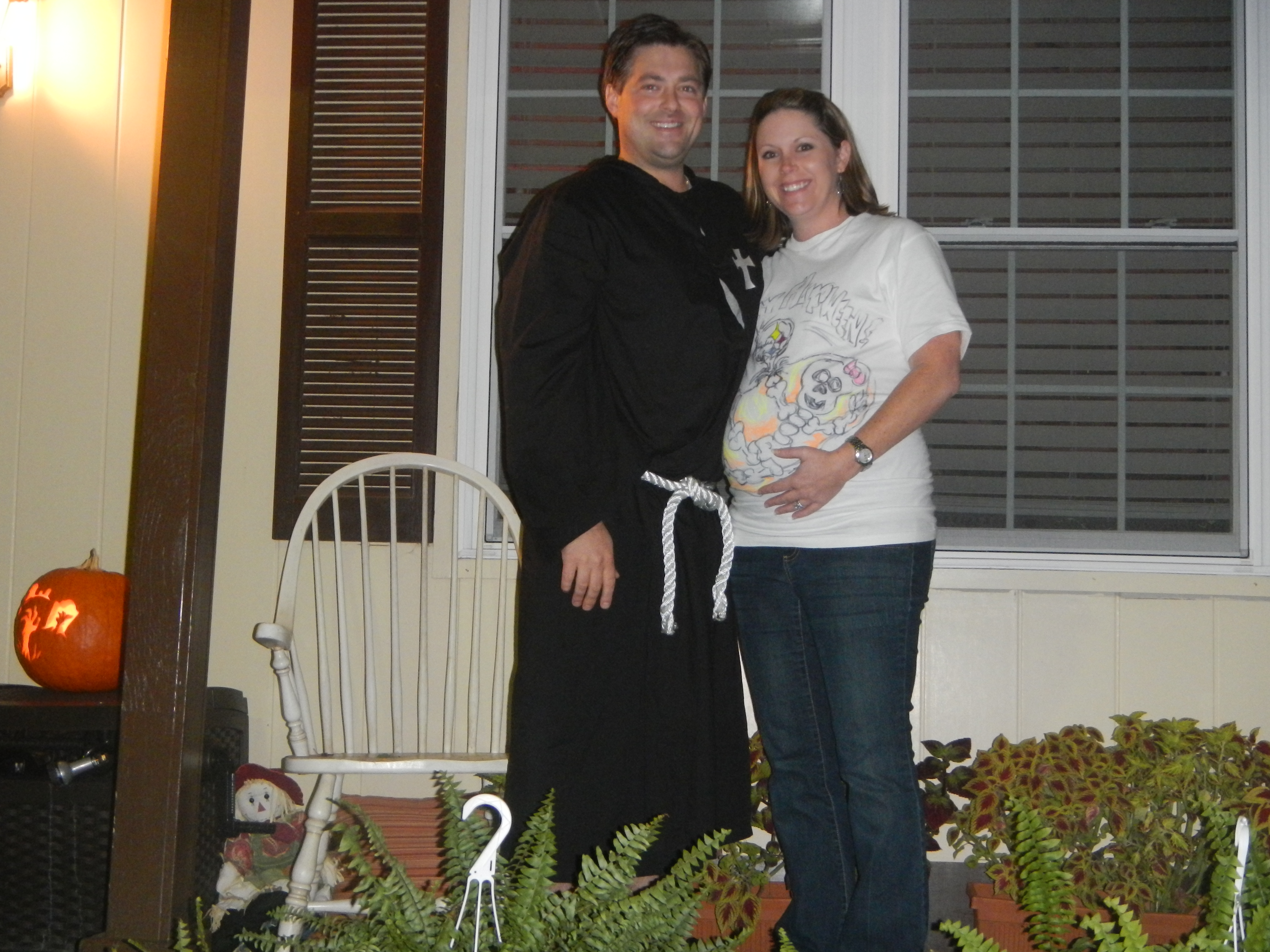 We were so excited this year being in our new house that we might actually get some trick or treaters. (we never got any at the old place because our building was locked) Daddy actually got dressed up to answer the door for the kids. His costume turned out to be a little too scary for the little ones, so he didn't end up having it on when he answered the door, but we had fun doing a photo shoot in the front yard.