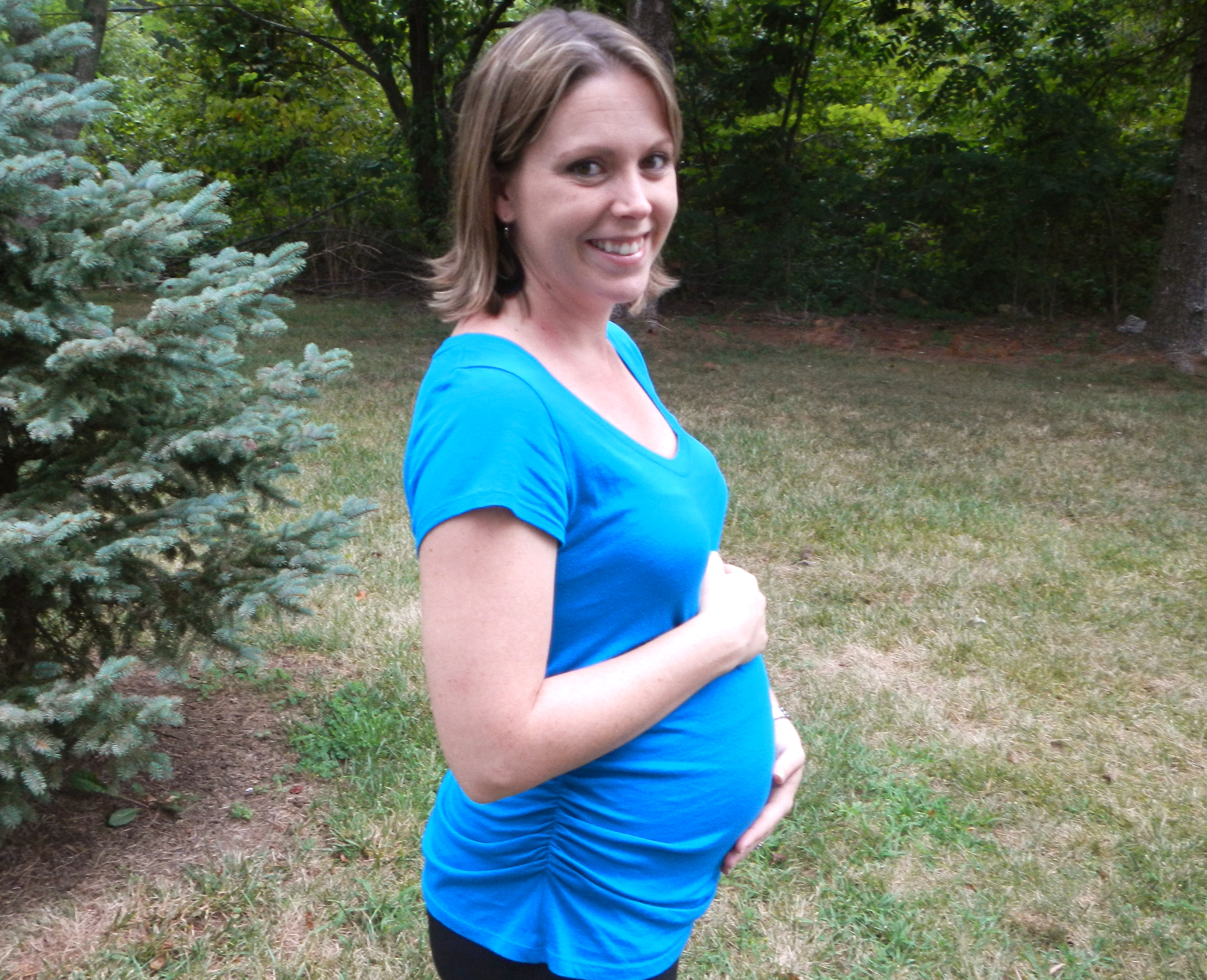 It wasn't like one of those crazy photos you see where you can actually see the foot or hand against the stomach, but it was still so for cool me. You are getting stronger and bigger and I think you are running out of room, so your movements seem to be a little closer to the outside of my tummy.