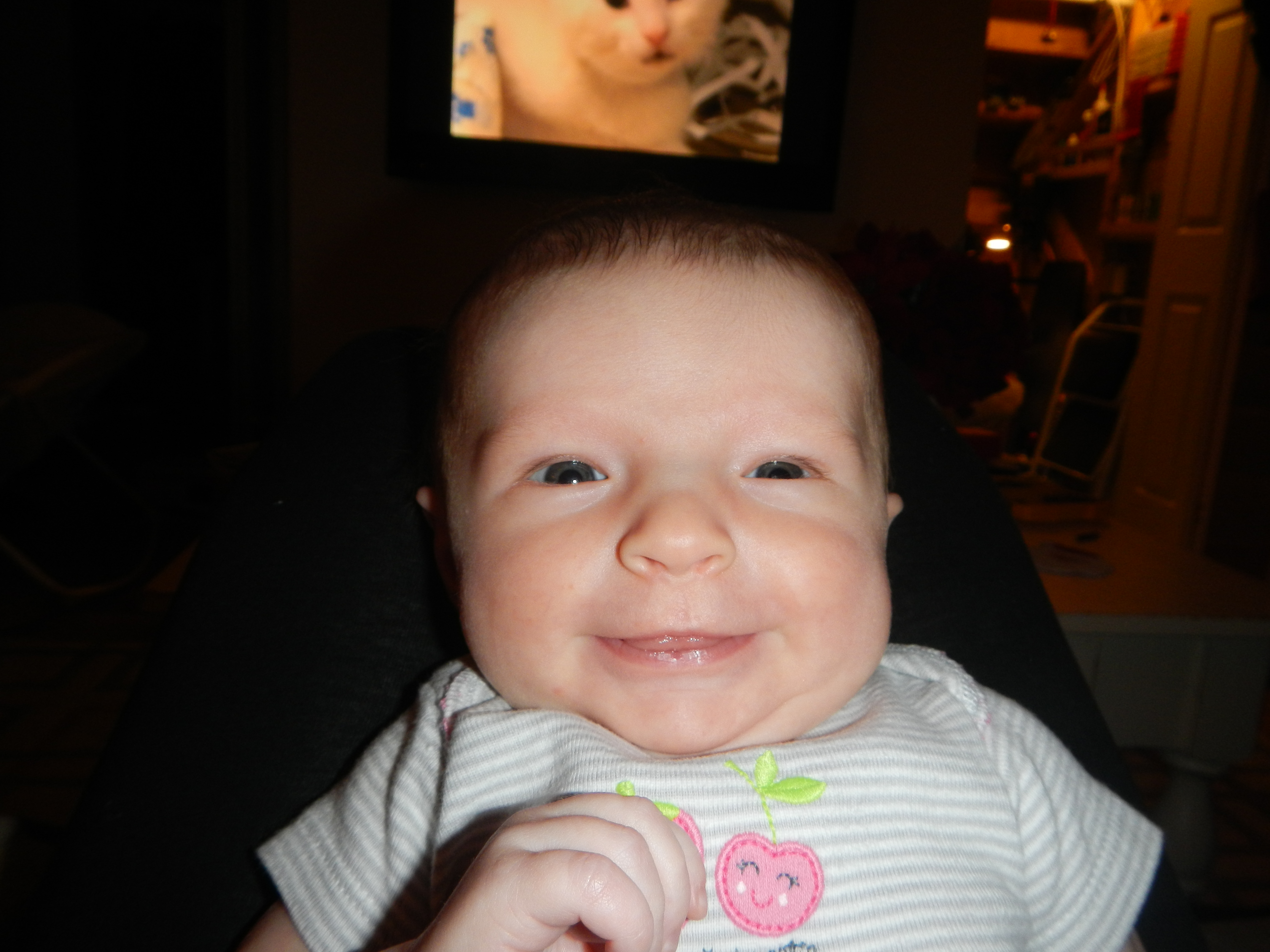 Each day I feel like you are changing. It is happening little by little so it is hard to pinpoint exact moments when your personality shifts. Over the last few days you have been in a much better mood throughout the day. You look around silently (meaning WITHOUT crying) more often and you seem to be more attentive to the things going on around you.