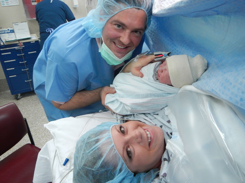 It was a wonderful moment that I know we will both be able to say was one of the greatest in our lives. The nurse handed you to me and I got to hold you for the first time and present you to your mom. We both teared joyously and were all smiles. One of the doctors took some pictures to help us remember the moment.