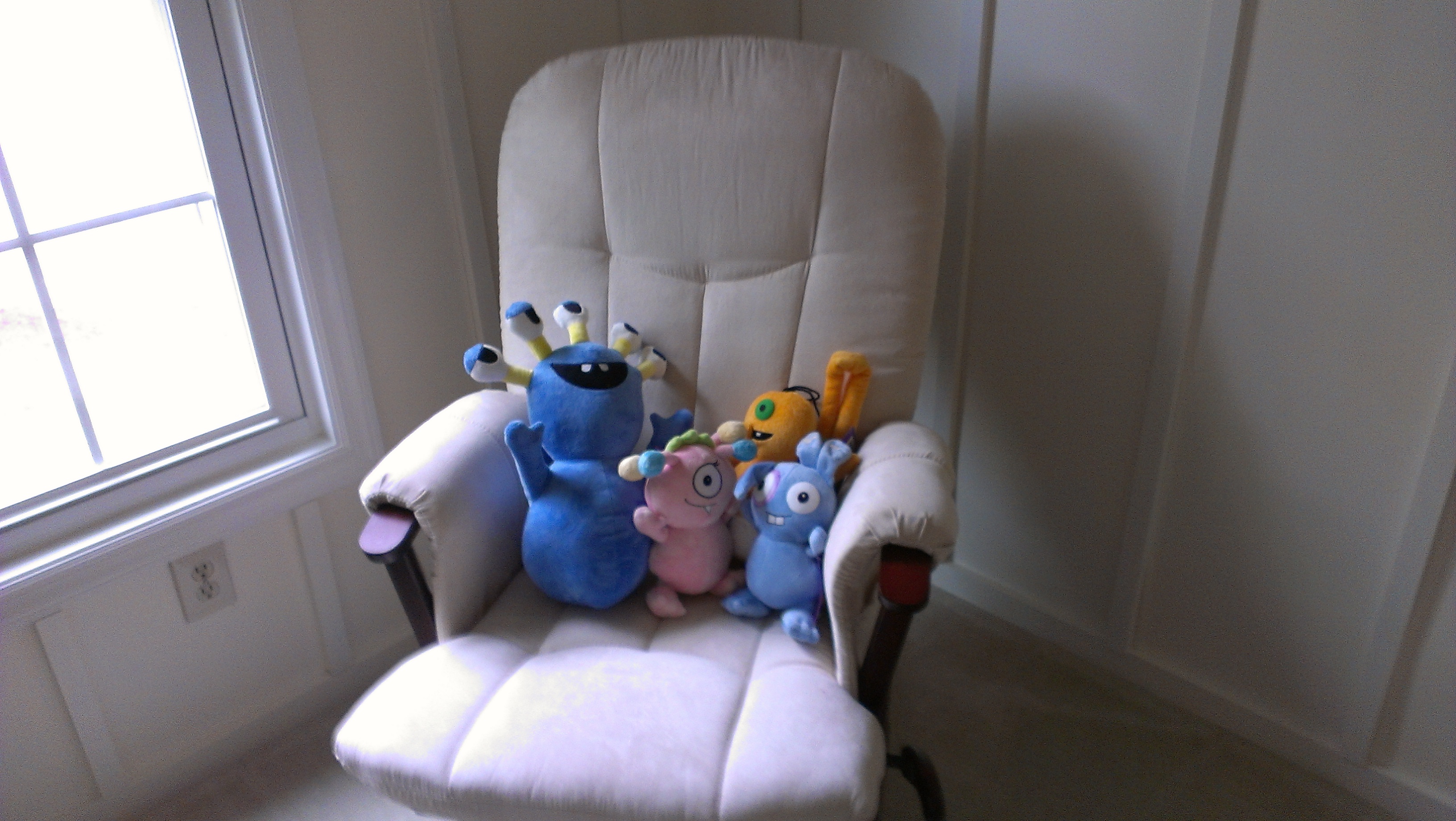 I decided to get you your first stuffed animal the other day and it finally arrived. It is one of four stuffed animals that I bought and it is meant to protect you from any monsters that may be hiding under your bed or in the closet. I'm not sure if or when you will be scared of monsters, but I am just getting a jump-start on it.